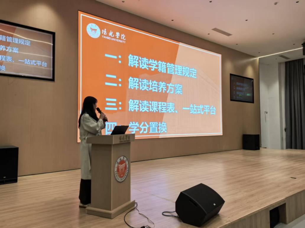 宣讲内容系统全面,紧密围绕新生学业。肖楚莹老师立足于2025级本科培养方案,从“学籍管理规定解读”、“专业培养方案解析”、“课程与平台使用”及“学分置换政策”四大核心模块进行了深入浅出的讲解。她详细介绍了入学注册、课程修读、考核与成绩记载、学籍异动(如转专业、休复学)等关键环节的具体规定,并对各专业的学分要求与课程架构进行了清晰说明,帮助新生建立起对大学教学管理体系的整体认知。